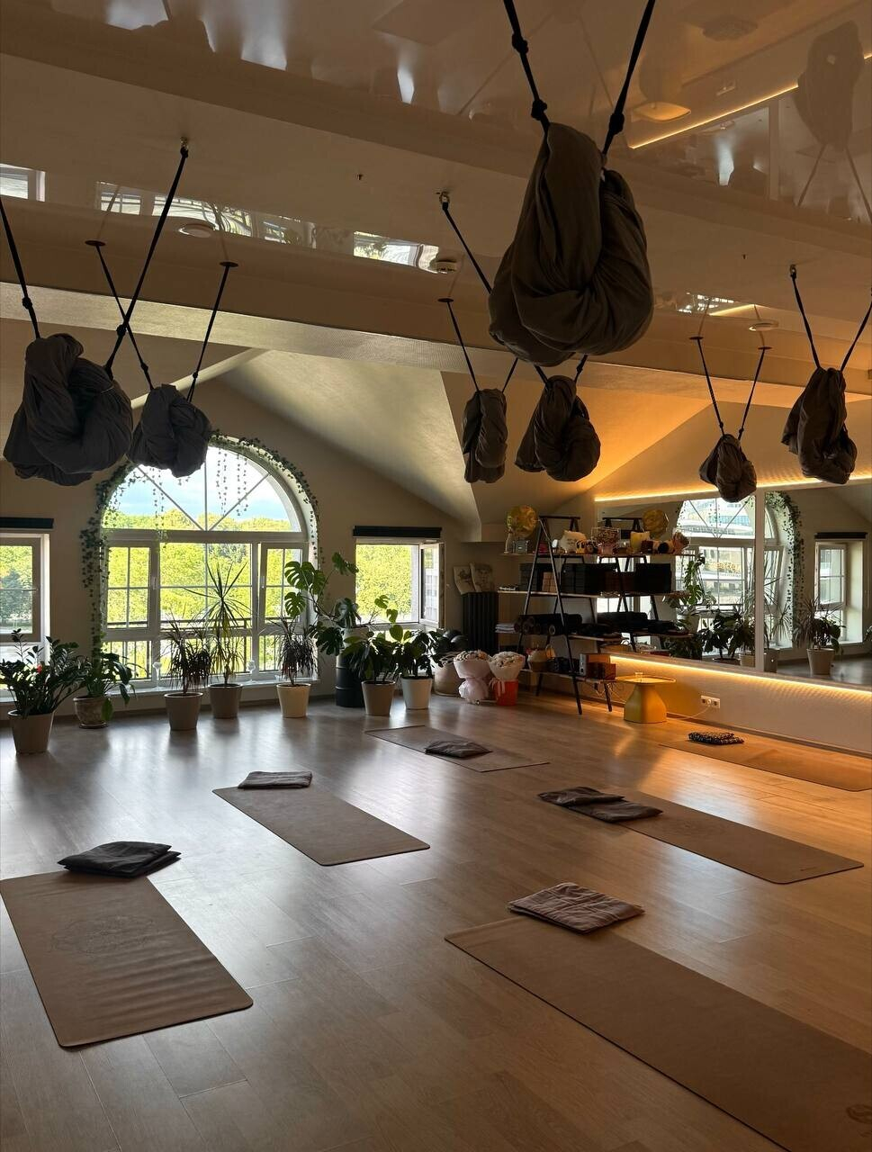 - Центр — Зыбицкая, 2. BeeHappyStudio — студия йоги и стретчинга в гамаках, пилатеса. Уютная атмосфера в теплых бежевых тонах с видом на Свислочь.