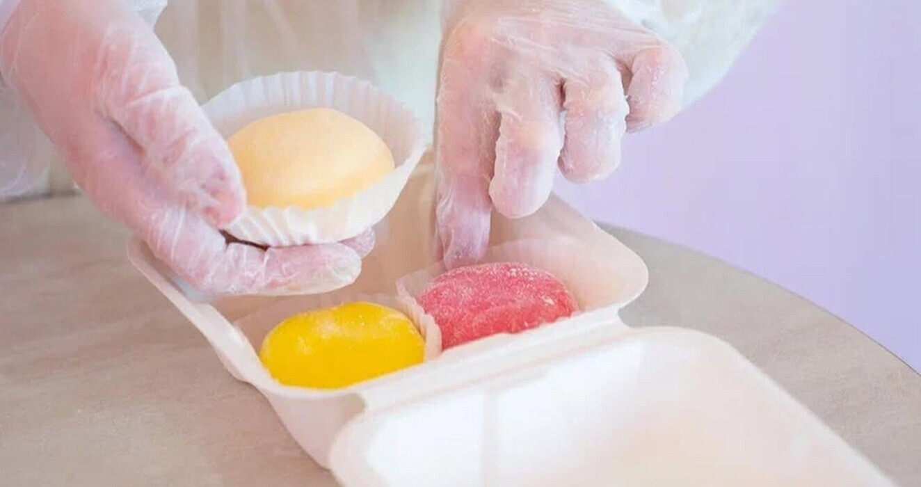 - Японский десерт моти (95 BYN) — мягкие, нежные пирожные с разными начинками: от киви до малинового пломбира.