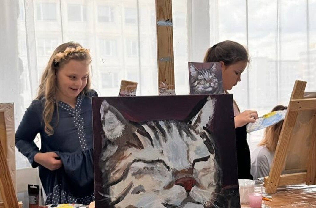 Атмосфера максимально непринужденная: все для творчества уже включено — холсты, краски, кисти. В студии есть музыка, проектор, настольные игры, а еще бесплатный чай и печеньки.