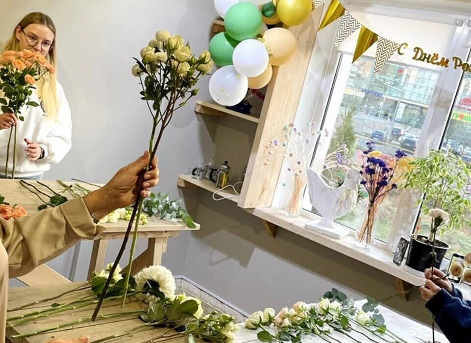 Здесь учат не только красиво расставлять цветы, но и правильно подготавливать их к работе: замачивать губку, делать идеальный срез и ухаживать за готовой композицией так, чтобы она радовала дольше. Самое приятное — свою работу вы забираете домой, а значит, воспоминание о встрече останется на подоконнике ещё надолго.