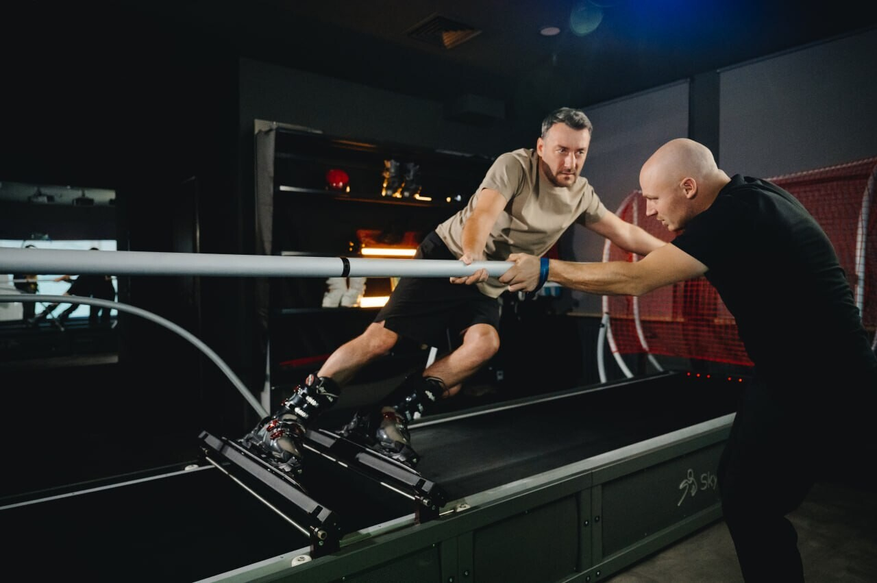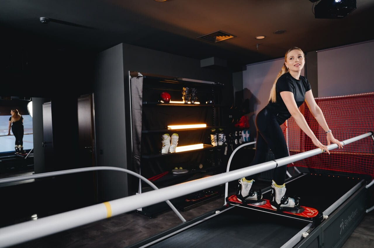 Этот новый проект успешно объединяет в себе спорт, фитнес и яркие впечатления. Дело в том, что зал построен на базе инновационных тренажеров SkyTechSports и оснащён системой визуально-физической симуляции, позволяющей почувствовать настоящий спуск по горнолыжному склону. Здесь можно совершенствовать технику катания и карвинг, тренировать силу и выносливость, развивать баланс и координацию, а также проводить время в атмосфере горнолыжного курорта, не покидая Минск. Занятия возможны для взрослых и детей старше 7 лет.
