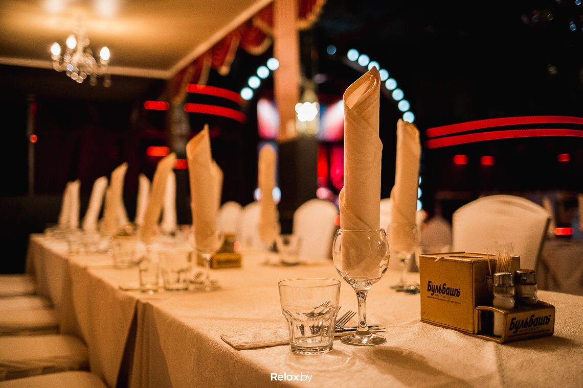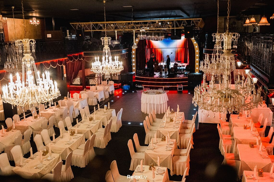 Впечатляет зал и масштабом. Одна из особенностей пространства — наличие второго уровня, откуда открывается хороший обзор на сцену и танцпол. Нижний зал максимально просторный, что удобно для разного зонирования на праздниках. А для желающих уединения предусмотрены камерные кабинки, где можно спрятаться от взглядов и провести вечер в приватной обстановке.