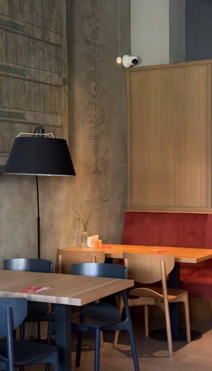 Это новое место также расположилось в современном «спальнике» — в ЖК «Левада». Когда-то здесь открывалась вкусная пекарня «Бэйк завод», но, увы, ее история стремительно закончилась. Планировку в пространстве кардинально не меняли, но атмосфера сменилась кардинально. Исчезло аутентичное панно на входе, появились томные гардины для зонирования, торшеры с теплым светом… В общем, все атрибуты с намеком на тихий вечер с бокалом красного.