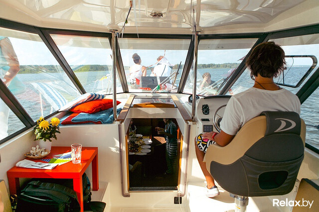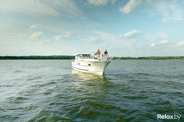 Если вы думаете, где в Минске прокатиться на яхте, то вы, очевидно, давно не проезжали по побережью Заславского водохранилища. Вчера на причале Robinson Club отметили пополнение и презентовали новую моторную Delphia 1350. Каюта с кухней и большим столом, диваном и креслами, два спальных места, два туалета и душ — в такой комплектации яхту предлагается арендовать на час за 1 800 000 рублей. Relax.by протестировал ее на ходу и узнал, сколько стоит приобрести такую для себя и что с ней делать зимой.