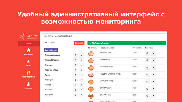 О том, что идея и система работают, говорит тот факт, что уже сегодня в пакете GetEat.by — суши, бургеры, пицца и шашлыки от Pizza Smile,