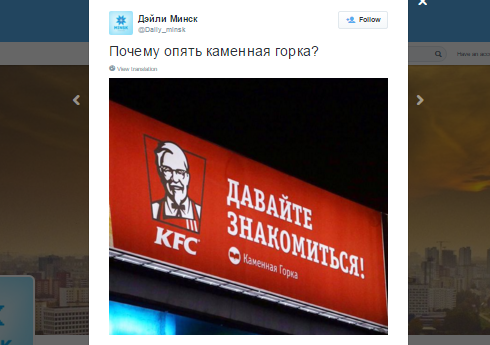 Наконец стало известно, что популярный ресторан быстрого питания KFC появится в Минске на улице Притыцкого, 101а. Открытие назначено на сентябрь, сегодня на здание вешают рекламу. Twitter уже вовсю обсуждает эту новость.