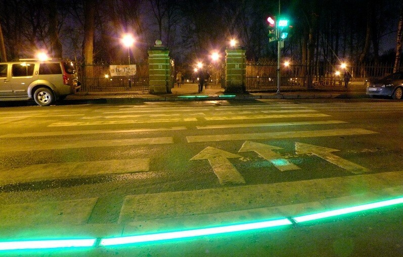 Работать они будут не для пешеходов, а для автомобилистов: фонарики, вмонтированные прямо в проезжую часть, призваны мигать соответствующим цветом в зависимости от движения, которое датчики заметят на «зебре». Например, советуя водителю снизить скорость, будут мигать желтым.