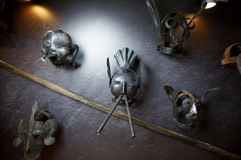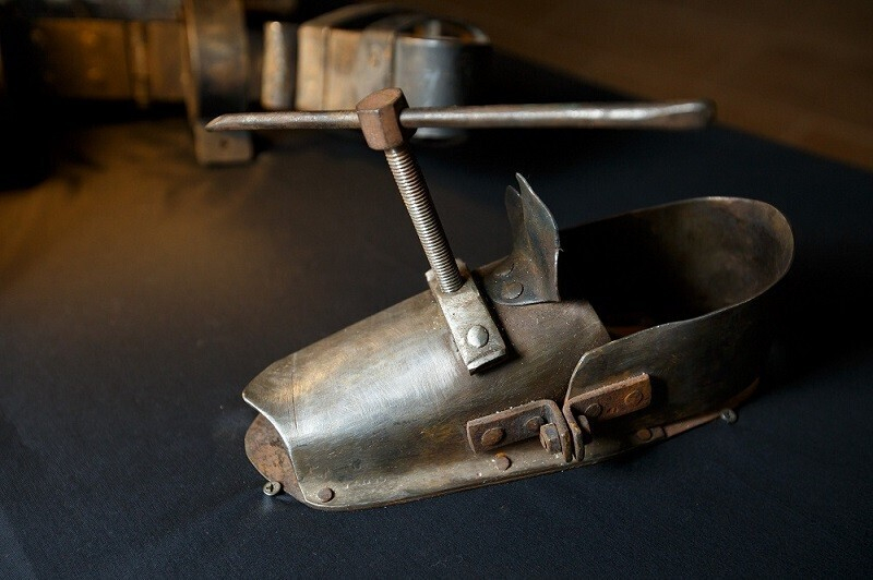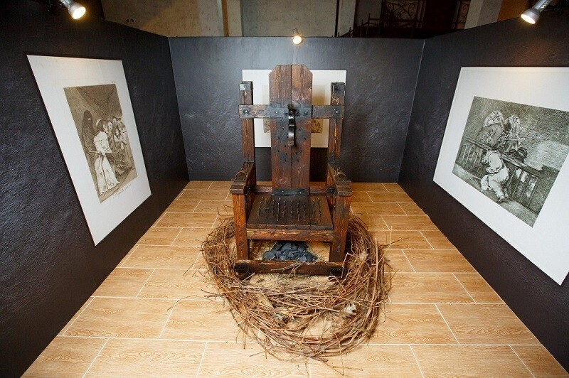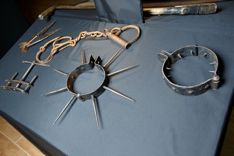 В экспозиции — приспособления, которые прославились благодаря своей мрачной неповторимости: «Маска для пытки водой», «Испанский сапог», «Стул ведьмы», «Маска позора», ошейник для женщины «Звезда», «Крест ведьмы». К тому же здесь можно увидеть копию настоящего топора палача, а также женский и мужской пояса верности. Есть здесь даже фотозона, где можно примерить кандалы узника.