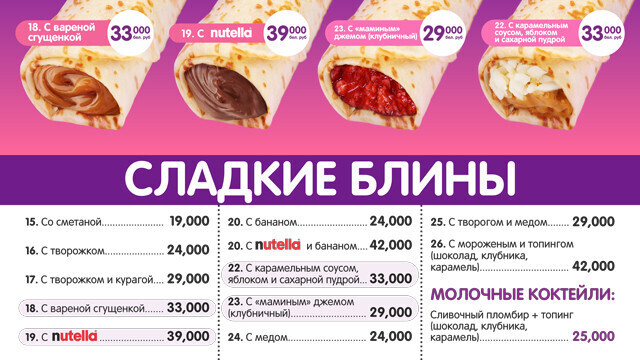 — Почему блинная? Да потому что это блюдо базовое, простое, понятное любому белорусу. К тому же нам кажется, что сегмент, связанный с этим блюдом, в части фаст-фуда абсолютно не освоен: те единичные блинные, которые сегодня есть (хоть мы и знаем удачные примеры заведений такого формата), являются не сетевыми. Да и в Минске довольно много бургерных и пиццерий, а полноценной сети, основанной на блинах, на белорусском рынке не существует. И мы хотим ею стать.