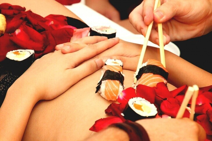 — Воспользоваться этой услугой можно в любой день, но особым спросом она пользуется в период праздников, — рассказали нам в заведении. — Чаще всего подобные сюрпризы устраивают, конечно, девушки, а мы им в этом помогаем: делаем стол «мягким», чтобы удобно было лежать, и украшаем тело ниотамори живыми цветами и листьями бананового дерева, на которые красиво выкладываются суши и гарнир. Степень «оголенности» может быть любой в зависимости от желания заказчика.