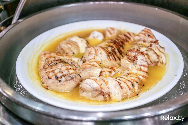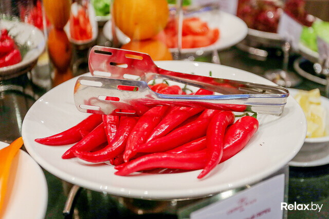 Из горячих блюд можно взять овощи на пару, на гриле, отварную картошку и жареные грибы. К этим гарнирам можно добавить курицу в апельсиновом соусе, поджаренные и отваренные сосиски, аппетитные шматочки бекона или же мясную нарезку из курицы, говядины или свинины. Для любителей есть несколько видов блинов. А добавьте к этому конфитюр, мед или джем — и получится восхитительное начало дня. Кстати, для тех, кто соблюдает пост здесь не составит труда найти постные блюда.