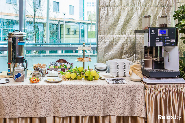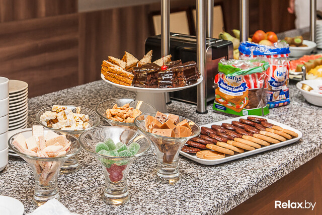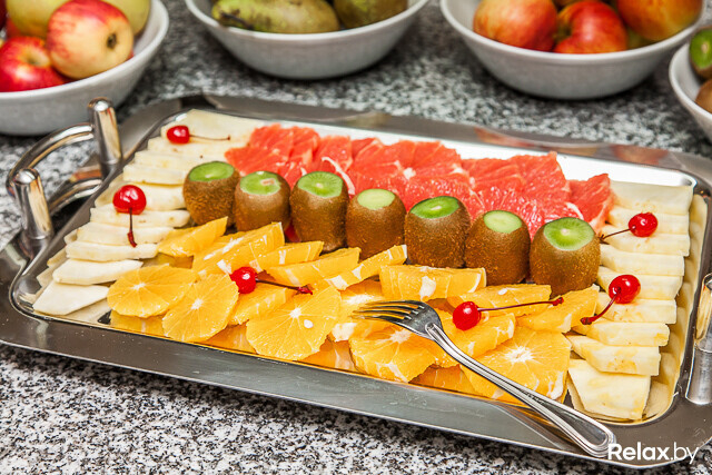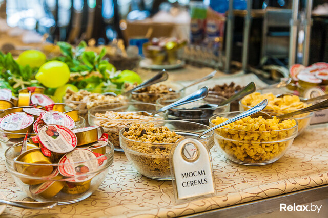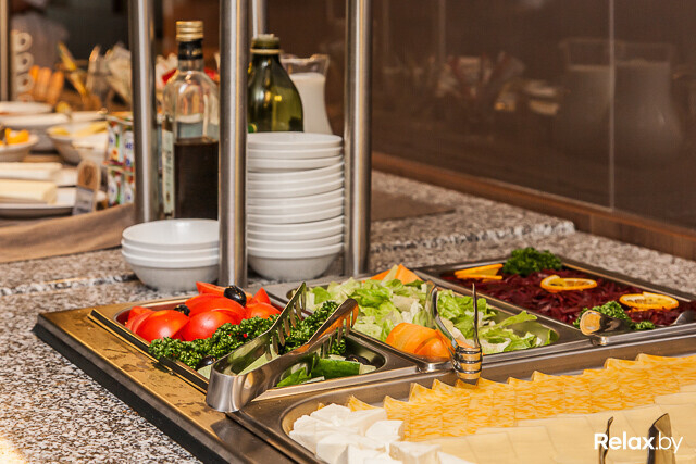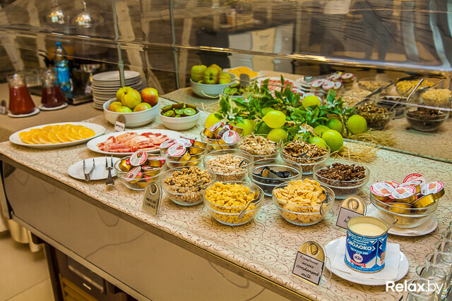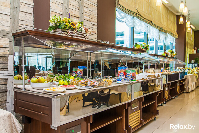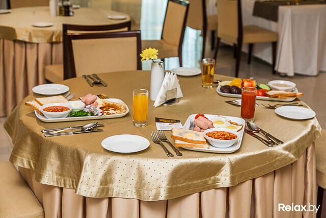 Шведская линия работает по привычному для минских гостиниц графику — с 7 до 11. Начать день за завтраком в «Виктории» могут не только гости отеля, но и все желающие или мимо проходившие. Стоимость одна из самых низких в категории «четыре звезды» — 300 тысяч рублей. Также ресторан предлагает заранее продуманный набор «утренней бодрости» — континентальный завтрак за пять и семь долларов.