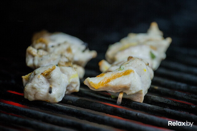 Пока все продукты вбирают вкус друг друга, на гриле румянится филе цыпленка.