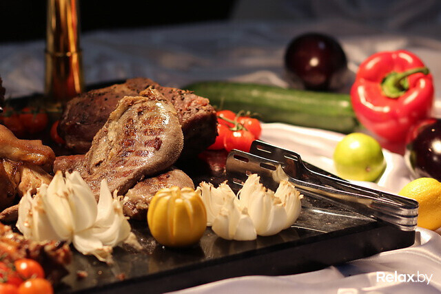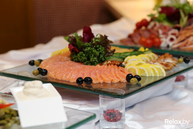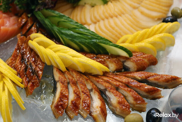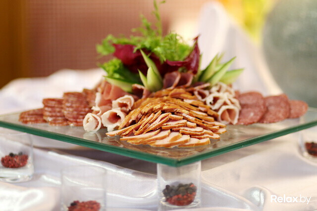 Гости с удовольствием пробуют блюда из мясного, рыбного, овощного плато.