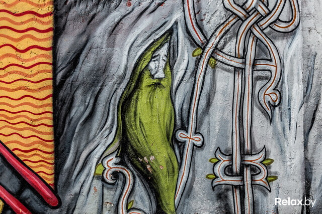 Как выяснил Relax.by, Олег говорил о граффити с Ярилом — белорусским языческим богом солнца. Если не видели бога-космонавта, сходите на улицу Рабкоровскую, 13 посмотреть вживую.