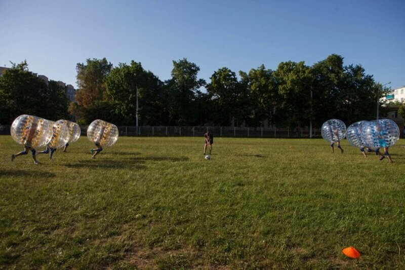 «Мы думали о том, чем заняться этим летом, наткнулись на видео с бамперболом и поняли, что это будет весело и интересно для наших людей. Выгребли деньги из сусеков, скинулись, чтобы купить шары — они к нам приехали из Китая и Европы, — и организовали бампербол. Честно говоря, первые отзывы очень хорошие. И у нас очень много классных идей, как можно развить это развлечение. Уже думаем над тем, чтобы бамперболом можно было заниматься и летом, и осенью, и зимой», — говорит студент БГЭУ Андрей и по совместительству организатор игры в бампербол.