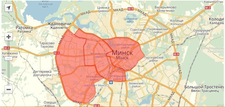 Фрунзенским, Московским, частично Центральным и Октябрьским районами Минска. Проверить, включается ли ваша улица или дом в доставку из ресторана, можно на официальном