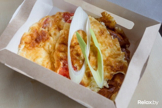Первый перекус в виде омлета легко сойдет и за первый прием пищи, если вы вдруг не успели позавтракать дома. По вкусу напоминает тот самый омлет из детства, какой готовят в саду или в младших классах школы. В общем, отличный вариант не только перекусить, но и предаться воспоминаниям, если вдруг выдалась свободная минутка.
