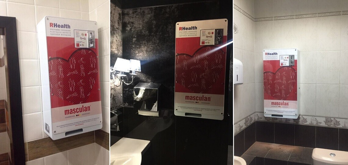 Специальные аппараты для продажи средств контрацепции появились в некоторых столичных заведениях. Сегодня такие можно увидеть в караоке-клубе Bogema, ресторане-пивоварне «Друзья», кафе «День и ночь», клубе Duroy и магазине крафтового пива BeerCap.