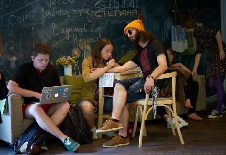 — принять участие в фотосушке (доступно для каждого) — то есть принести и развесить свои работы на веревках в обмен на чужие приглянувшиеся карточки;
