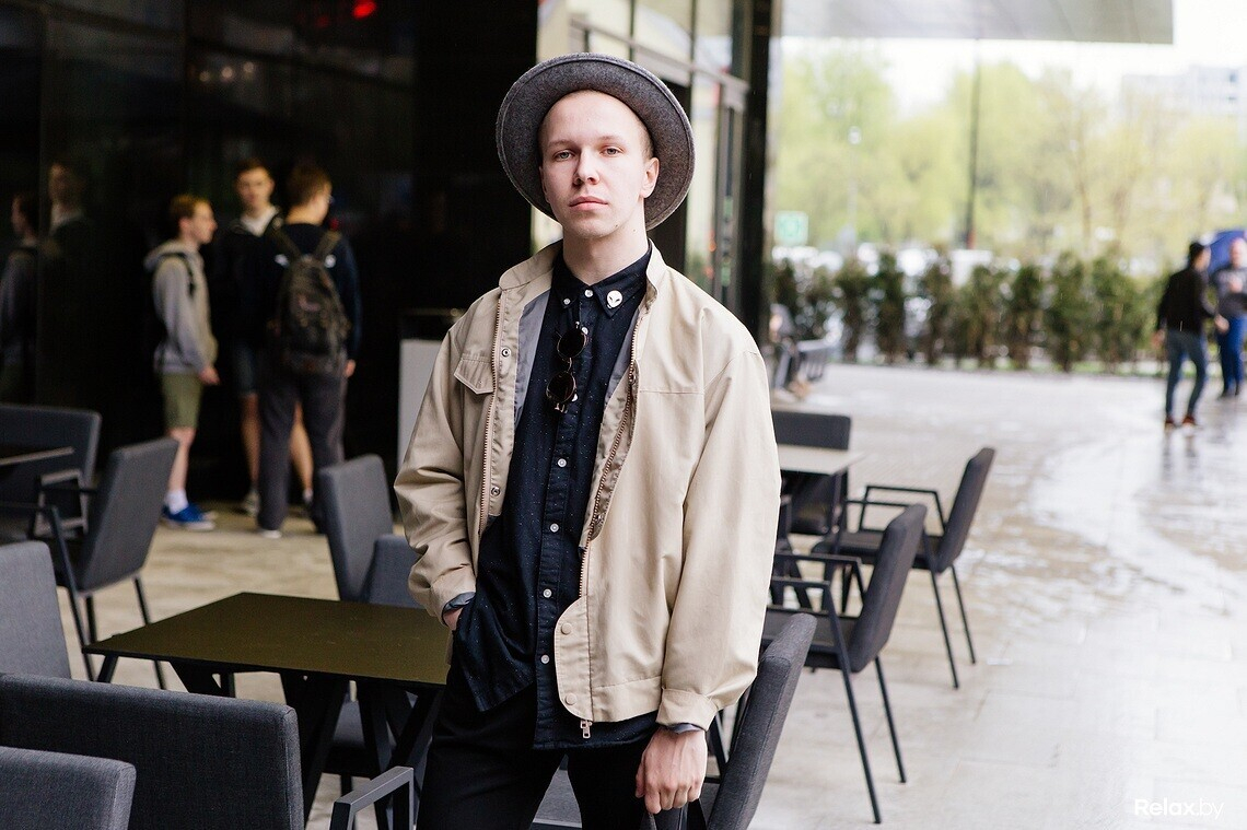 — Сегодня на мне джинсы Wrangler; у меня трое штанов этого бренда, очень удобные и качественные, все были куплены в секонд-хендах и стоили не больше 10-15 рублей. Рубашку я покупал недавно в Таллине в магазине NewYorker за 13 евро. Значок с инопланетянином — подарок подруги-путешественницы. Куртка — из 90-ых, а винтажная шляпа Аtlas нашлась в «секонде» Вильнюса.