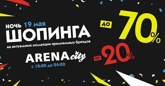 В ТРЦ ArenaCity пройдет ночь шопинга со скидками до 70% почти во всех магазинах и кинотеатре