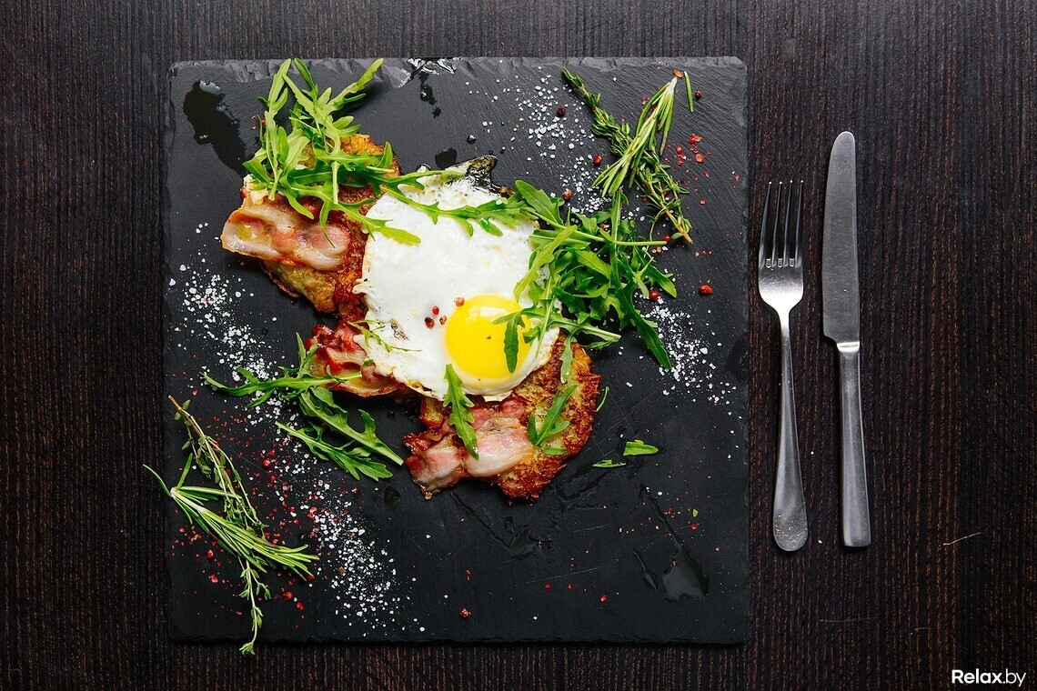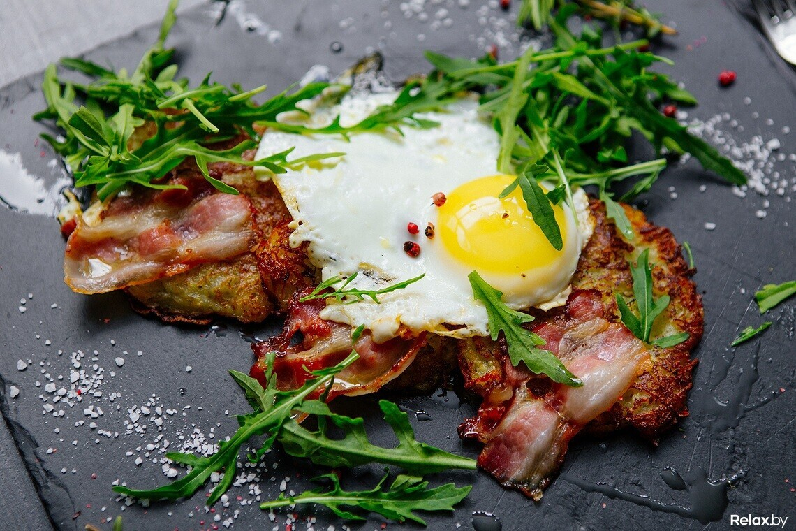 Драники с яйцом и беконом от Art Grill
