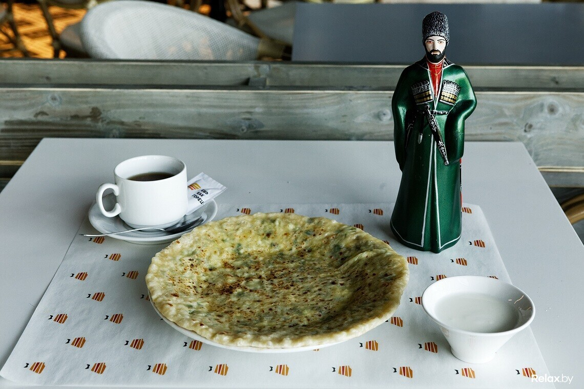 Хычины — национальное блюдо карачаевцев и балкарцев, домашние лепешки с начинками из сыра, картофеля и мяса. Картофельно-сырный и сырный хычины повара заведения советуют есть со сметаной, а мясной — с чесночным соусом. Цена: хычины с мясом — 5 руб., с сыром и зеленью — 4,5 руб., с картофелем и сыром — 4 руб.