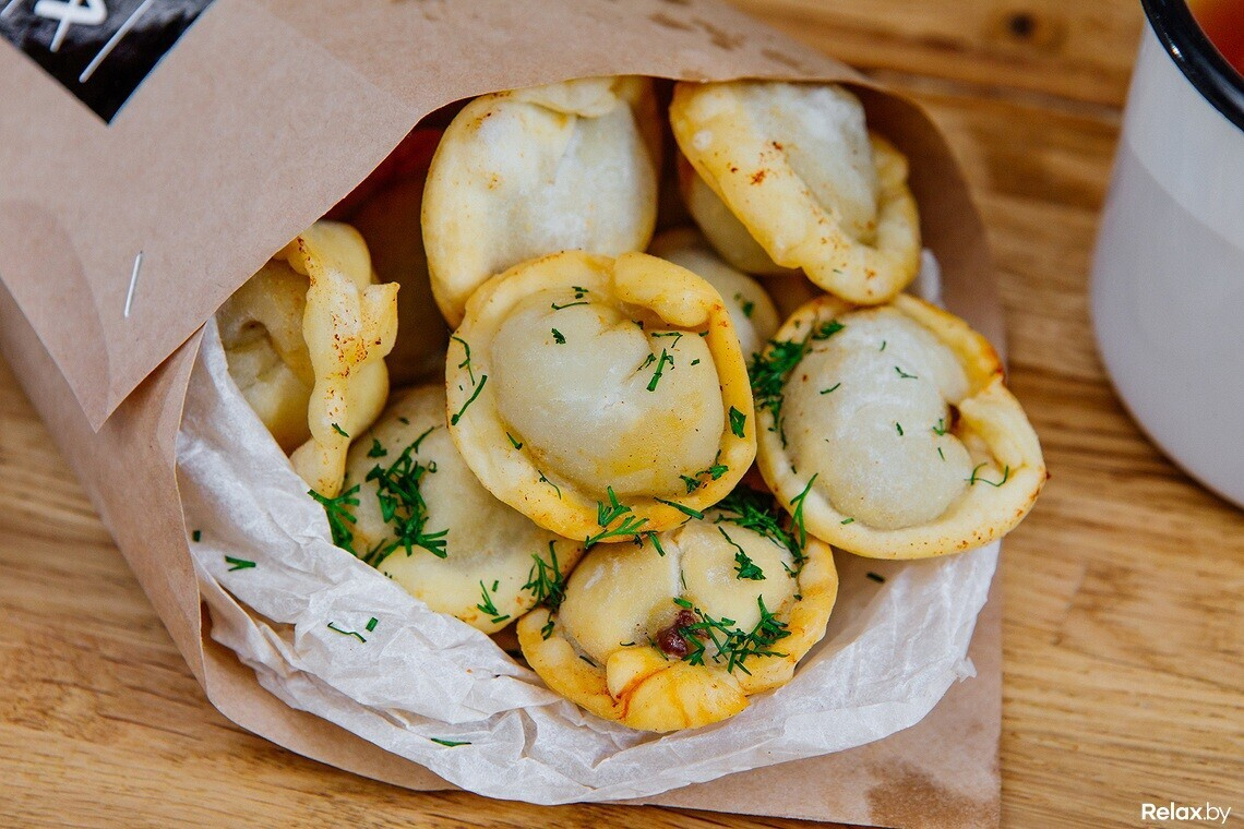 Их лепят руками незадолго до приготовления, а затем жарят во фритюре. На фестивале будут представлены пельмени «Классика жанра» с начинкой из 3 видов мяса. К ним отлично подойдет соус на основе домашнего майонеза, соус барбекю или сметана. Цена: 5 рублей.