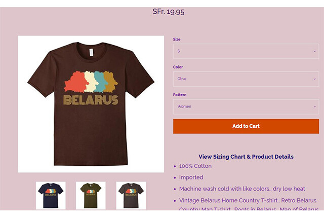 Фотофакт: швейцарский интернет-магазин продает серию футболок BELARUS