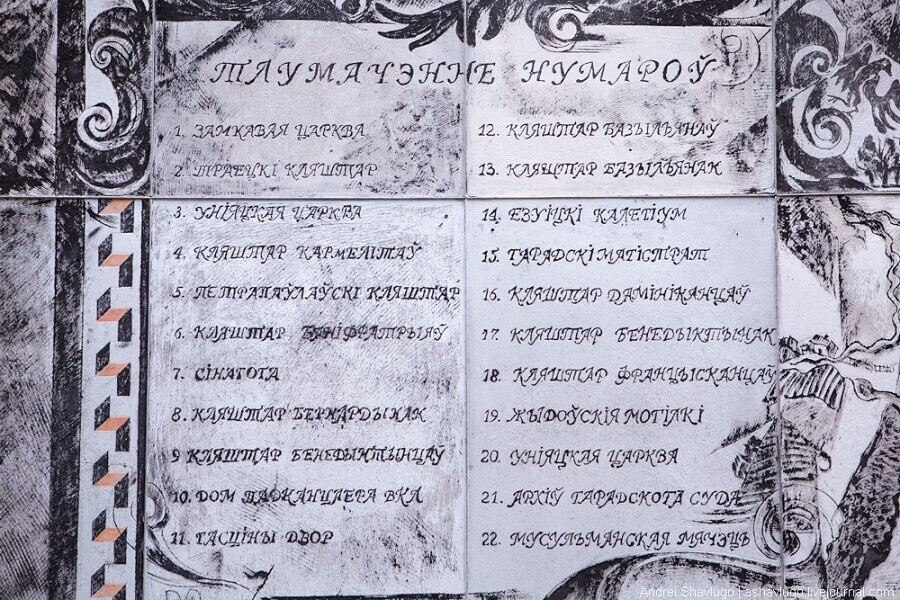 На улице Герцена в Верхнем городе решили обновить план губернского Минска, который написан на стене одного из зданий комплекса бернардинцев. На этом плане есть важные сведения о городе в 1797 году: показано расположение значимых учреждений — церквей, синагоги, кладбища и других.