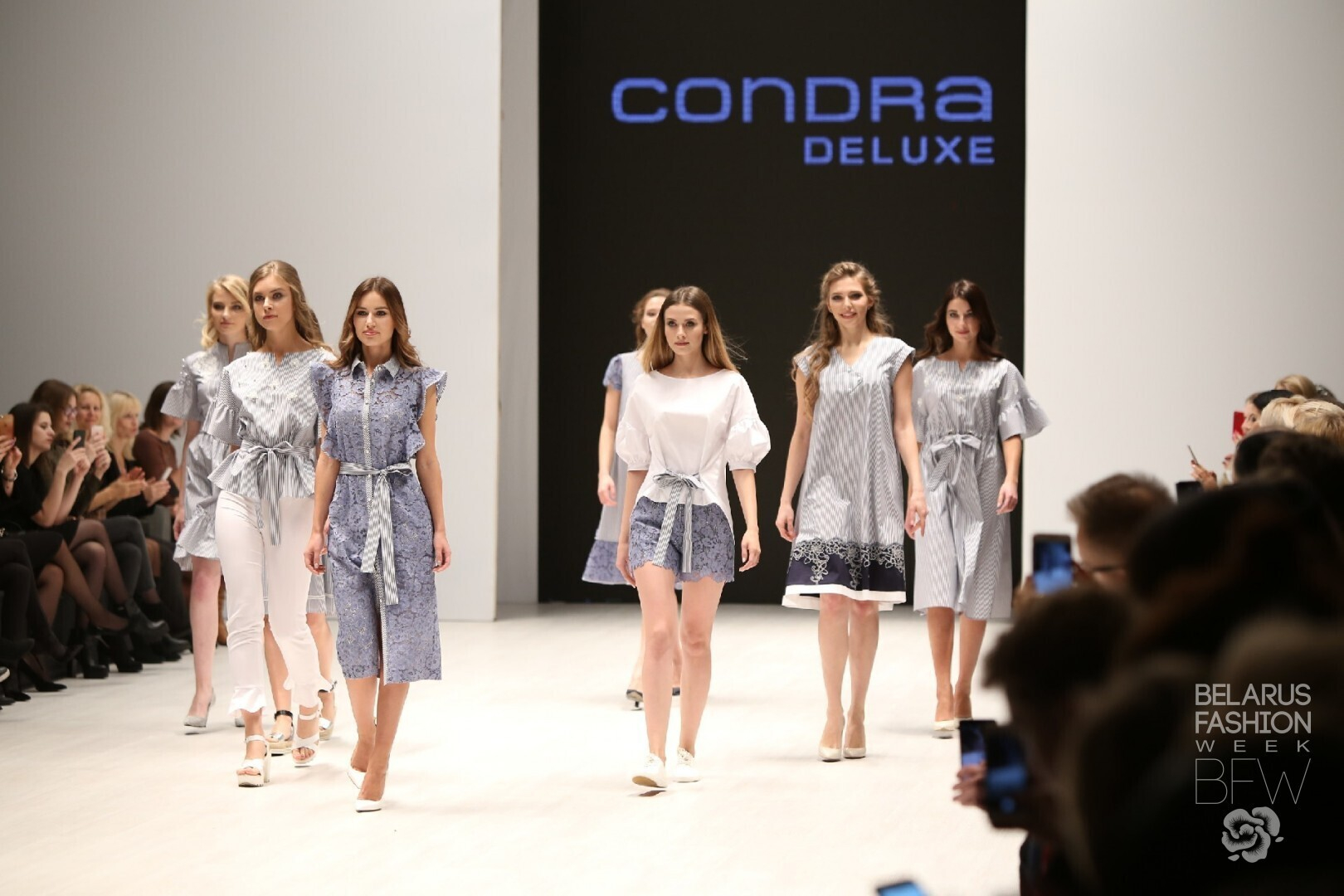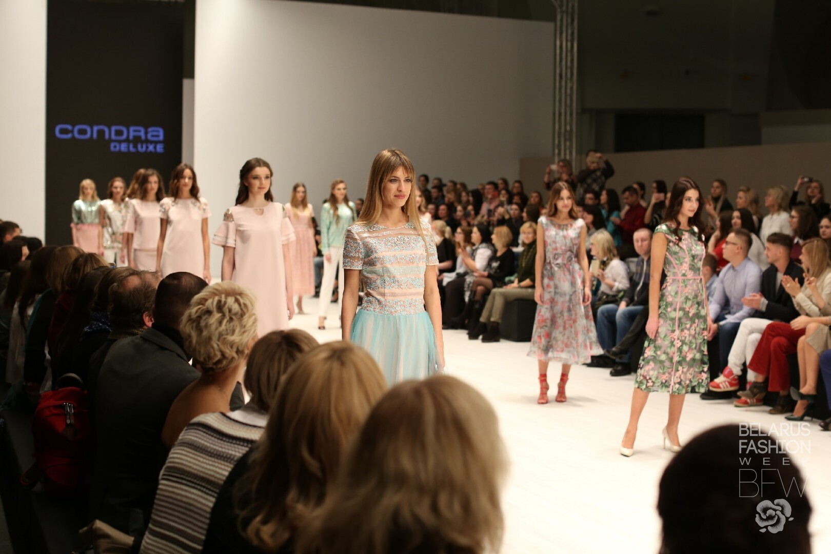 Condra Deluxe разработали коллекцию, которую логично разделили на блоки. Каждый блок — это отдельная история, состоящая большей частью из платьев. В моделях присутствует кружево, подчеркнутая талия, цветочные мотивы, пастельная гамма и деликатный декор.