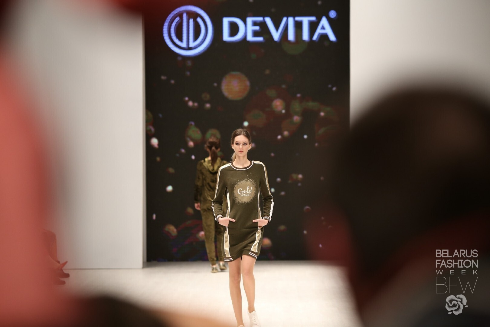 DeVita показала коллекцию в стиле Sport Chic. Таким вещам свойственна простота кроя, присущая спортивному направлению в одежде, ее компенсируют яркими элементами, фурнитурой и трендовыми надписями.