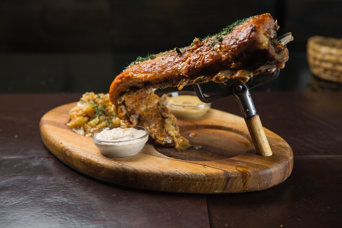 С годами появились фирменные блюда. Например, «Вилы в бок» — это запеченные свиные ребра с тушеной капустой, отварным картофелем, хреном, горчицей и зеленью. А «Спина барана» — это запеченная баранья корейка с реберной костью, которую заказывают на компанию из 3-4 человек.