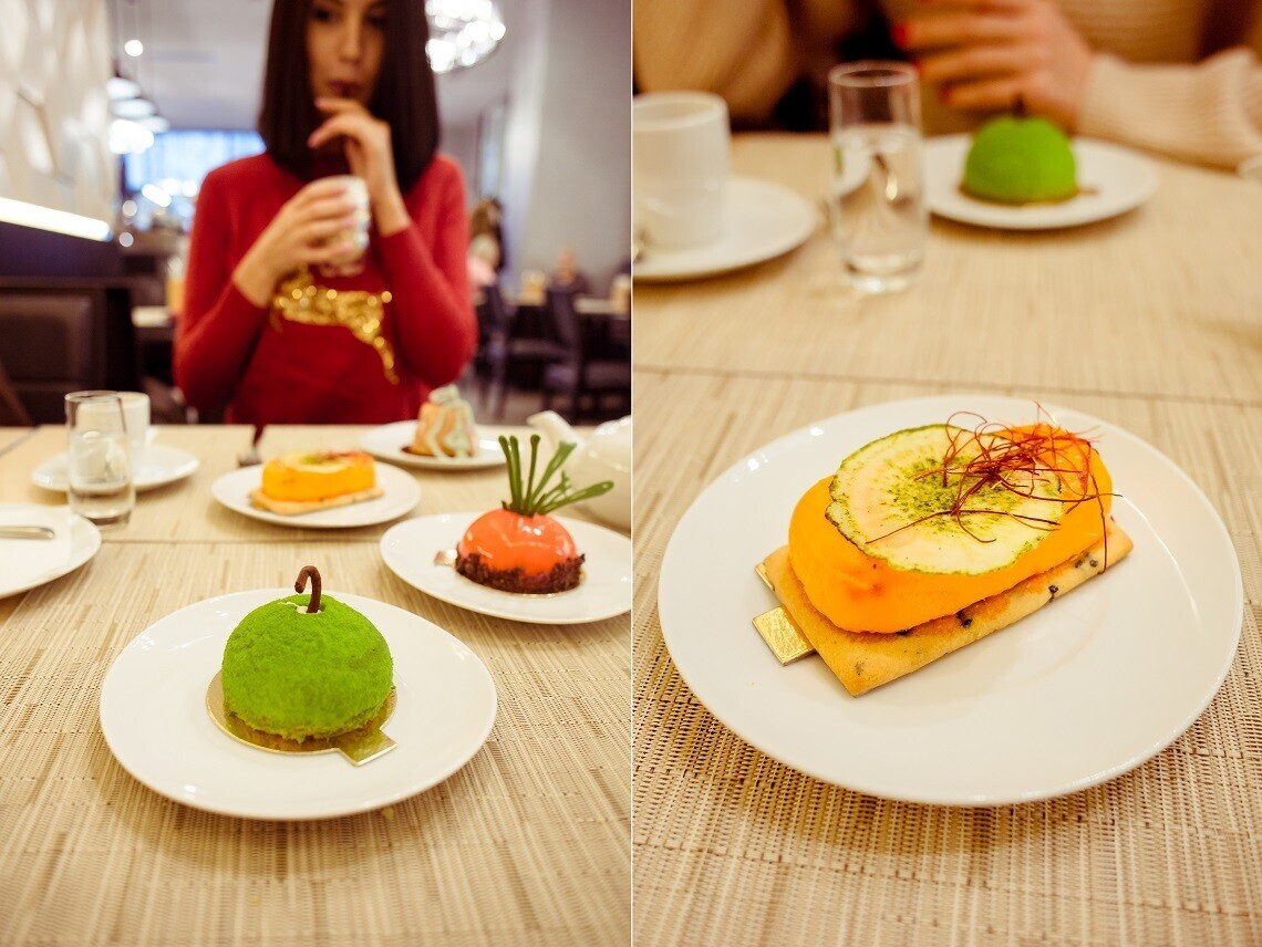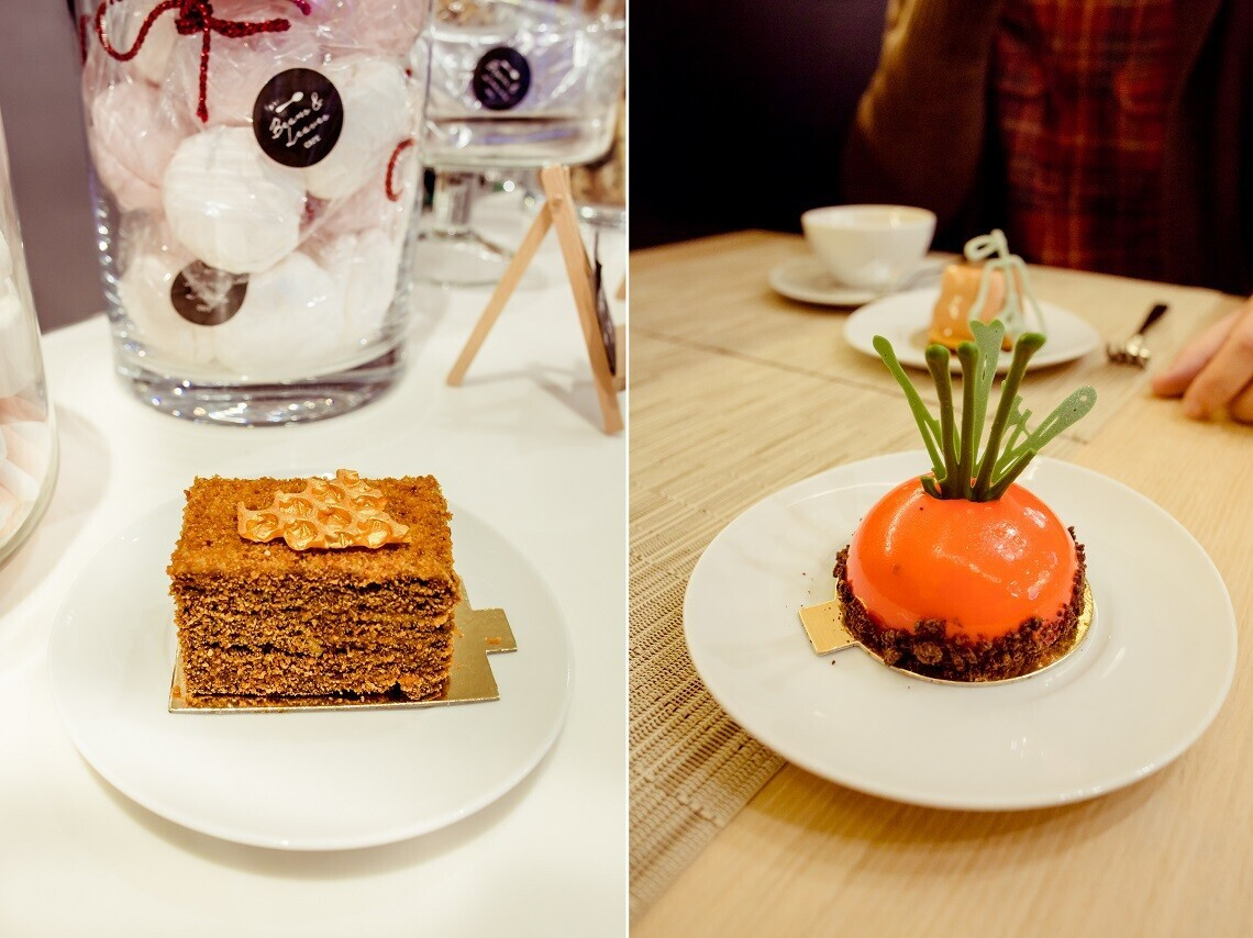 В новой десертной карте — сладости из натуральных ингредиентов: безглютеновая «Пьяная вишня», десерт с муссом из тимьяна и кули из клубники и чили «Игривый клоун», бисквит из моркови и свеклы с манговым муссом и кули из облепихи «Морковная лихорадка» и многие другие. Любители классических сочетаний могут заказать медовик, фирменный чизкейк или инжирный кейк с шоколадом и апельсином, созданный по рецепту мамы Геральда Рейхштейна, шеф-повара отеля DoubleTree by Hilton.