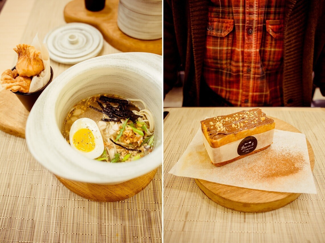 Обновилось также меню завтраков. С 09:00 до 11:00 в Beans&Leaves теперь можно съесть не только гранолу или скрэмбл с беконом и фасолью, но и тост с нутеллой и орехами (6 рублей) и суп с лапшой и яйцом под загадочным названием «Путешествие в Дальневосточную Азию» (8 рублей).