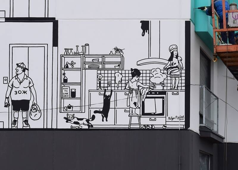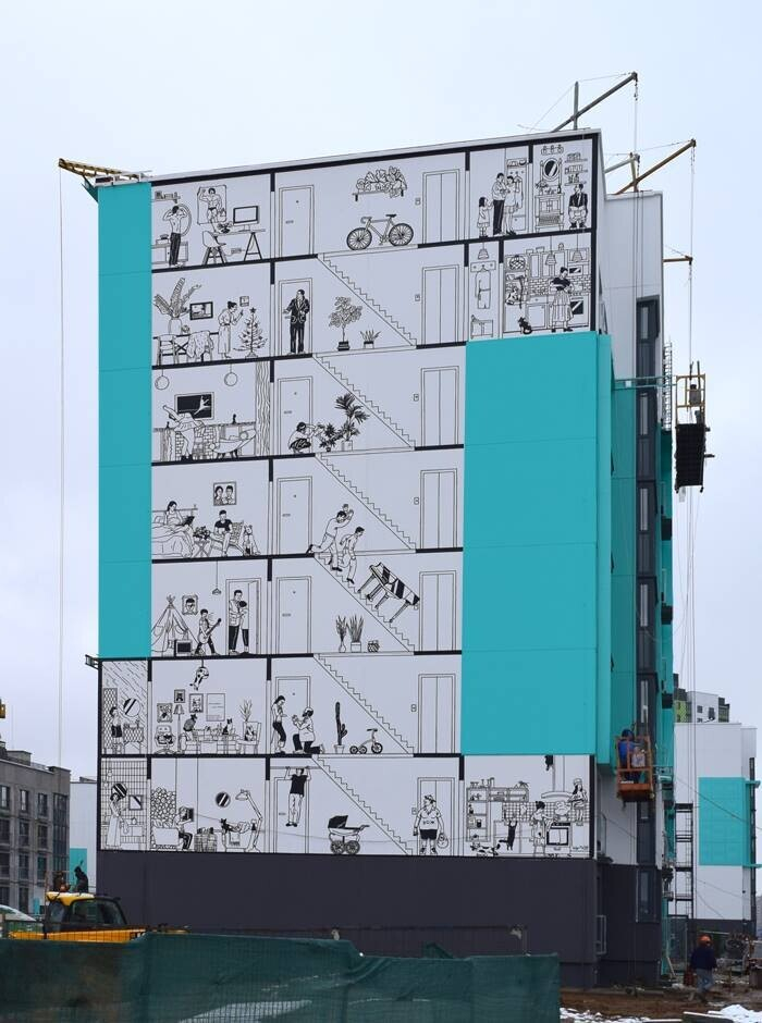 Минский стритарт художник Митя Писляк объявил о готовности своей новой работы. Ее он выполнял для компании «А-100 Девелопмент». Стена одного из домов в Новой Боровой стала основой для картины художника.На сегодняшний день это самое большое его произведение: 13,5 х 21,5 метра.