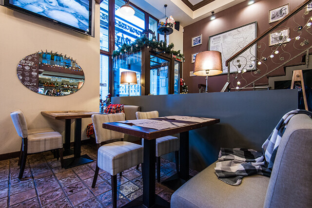 «Городское кафе 12/13» находится в центре Минска по адресу пр-т Независимости, 12.