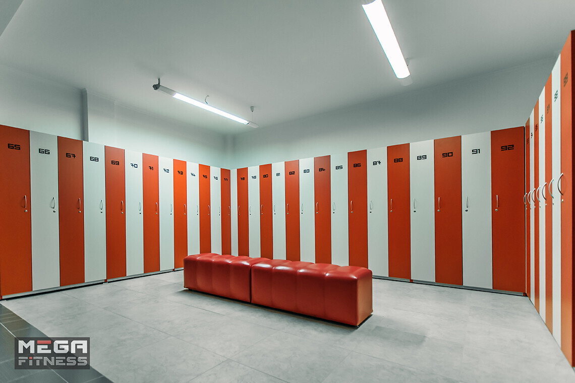 В дизайне тренажерного зала преобладают оранжевый, белый и черный. Бодрящее сочетание цветов способно зарядить и настроить посетителя на нужный рабочий лад. А просторные раздевалки и душевые не позволят почувствовать себя стесненными после утомительной тренировки.