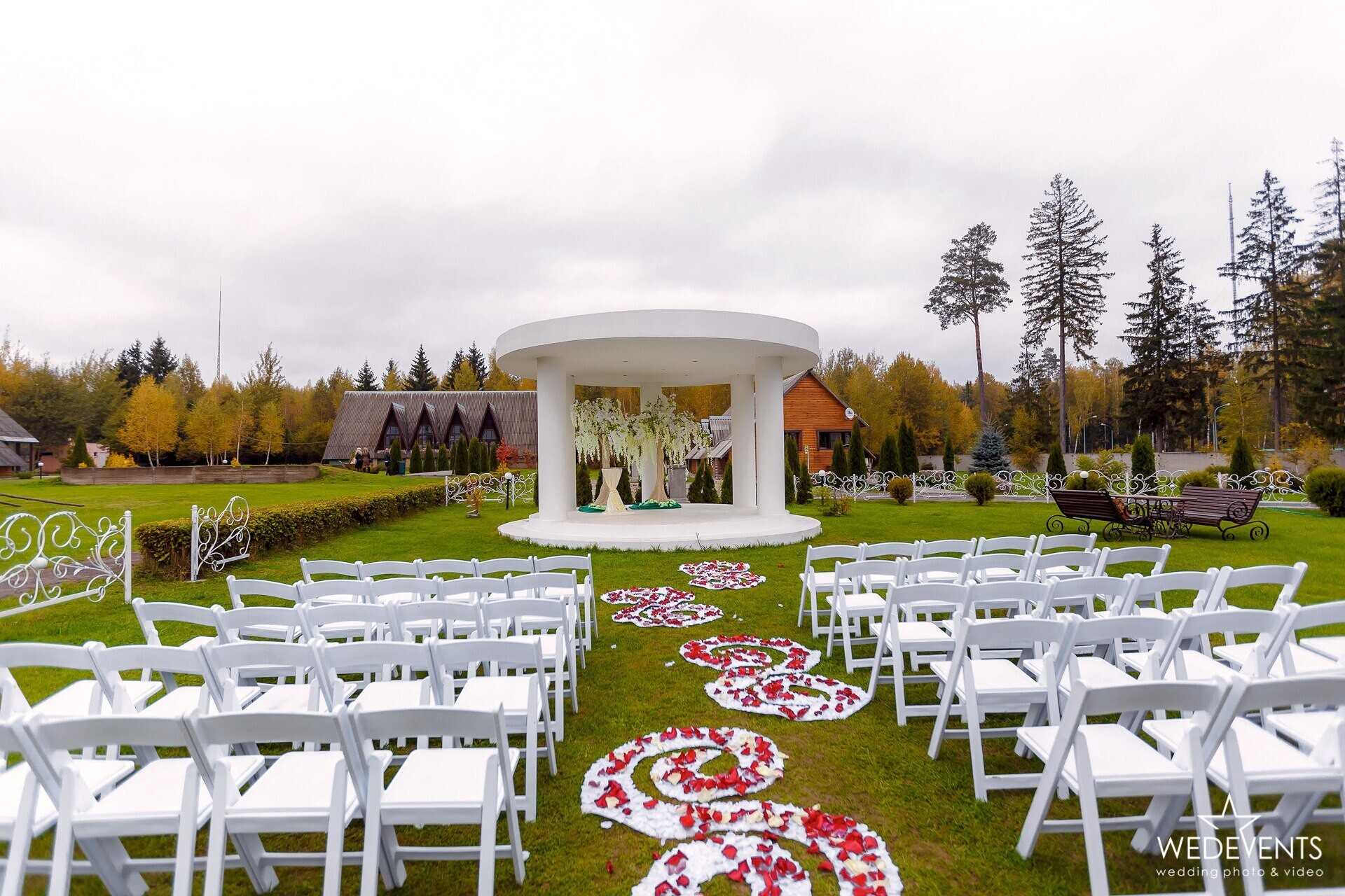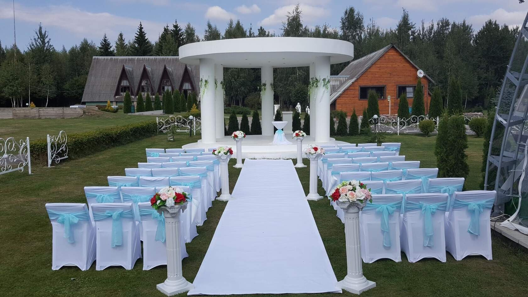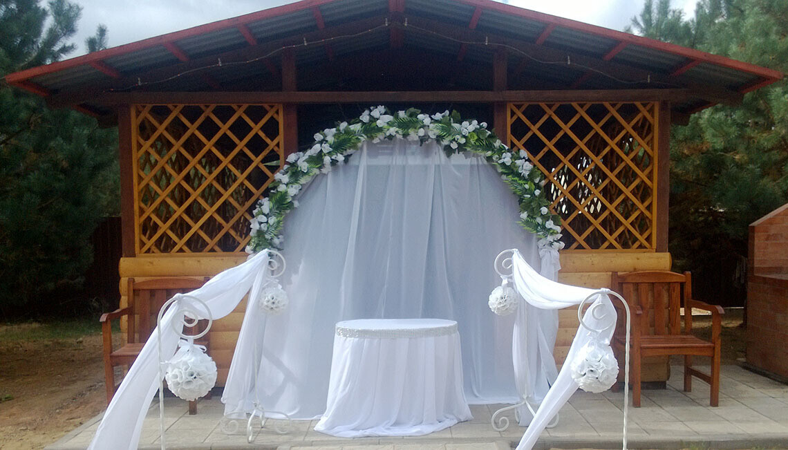 Предоставляется ли декор для выездной регистрации: базовый декор предоставляется. Специалисты загородного комплекса советуют подрядчиков-декораторов, которые могут воплотить в жизнь любые идеи и задумки молодоженов.