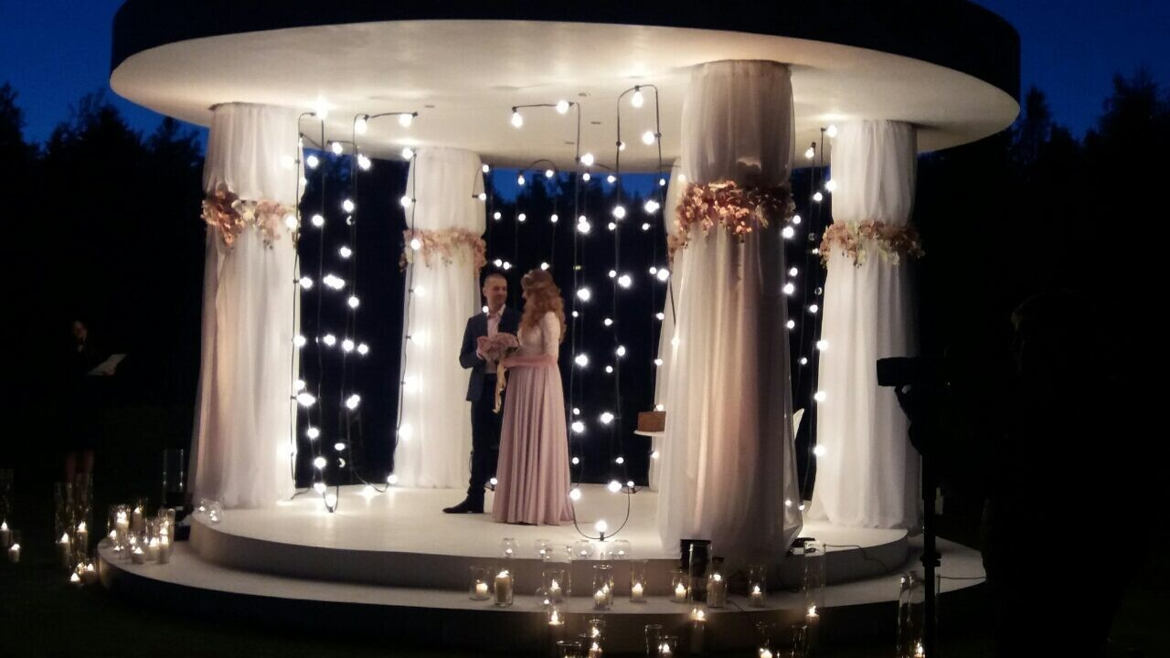 Предоставляется ли декор для выездной регистрации: предоставляется шатер на природе и флористическое оформление мероприятия. Цена — по договоренности.