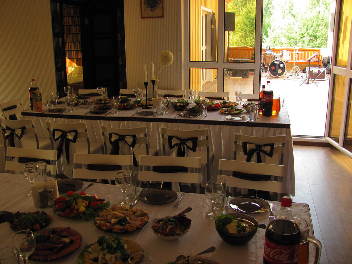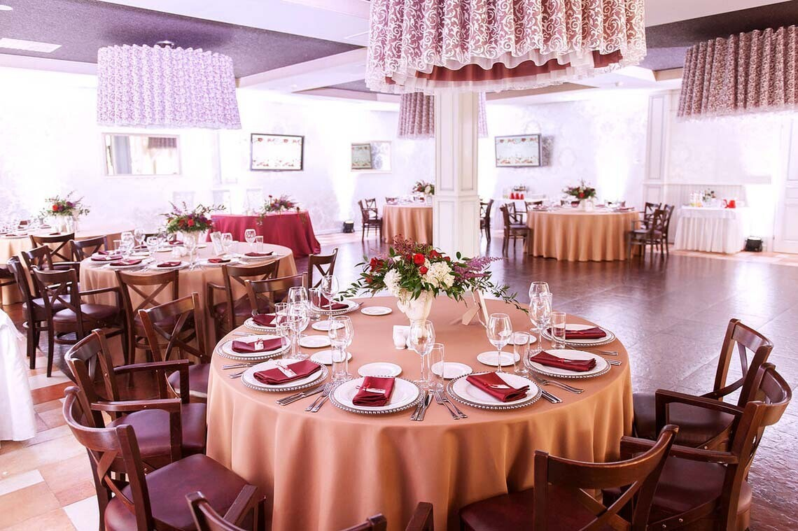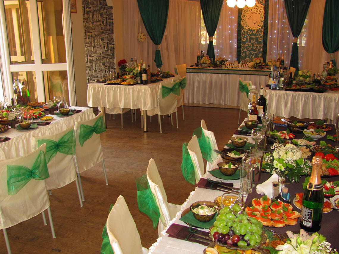 Дополнительные возможности: номер для молодоженов, баня, помощь в организации свадебного торжества, мальчишника и девичника, выездной регистрации и фуршета.