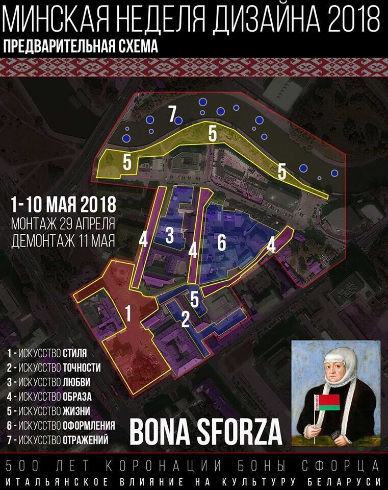 В Верхнем городе стартовал фестиваль дизайна MINSK DESIGN WEEK. Главная тема мероприятия — 500-летие восшествия на престол Речи Посполитой миланской принцессы Боны Сфорца.
