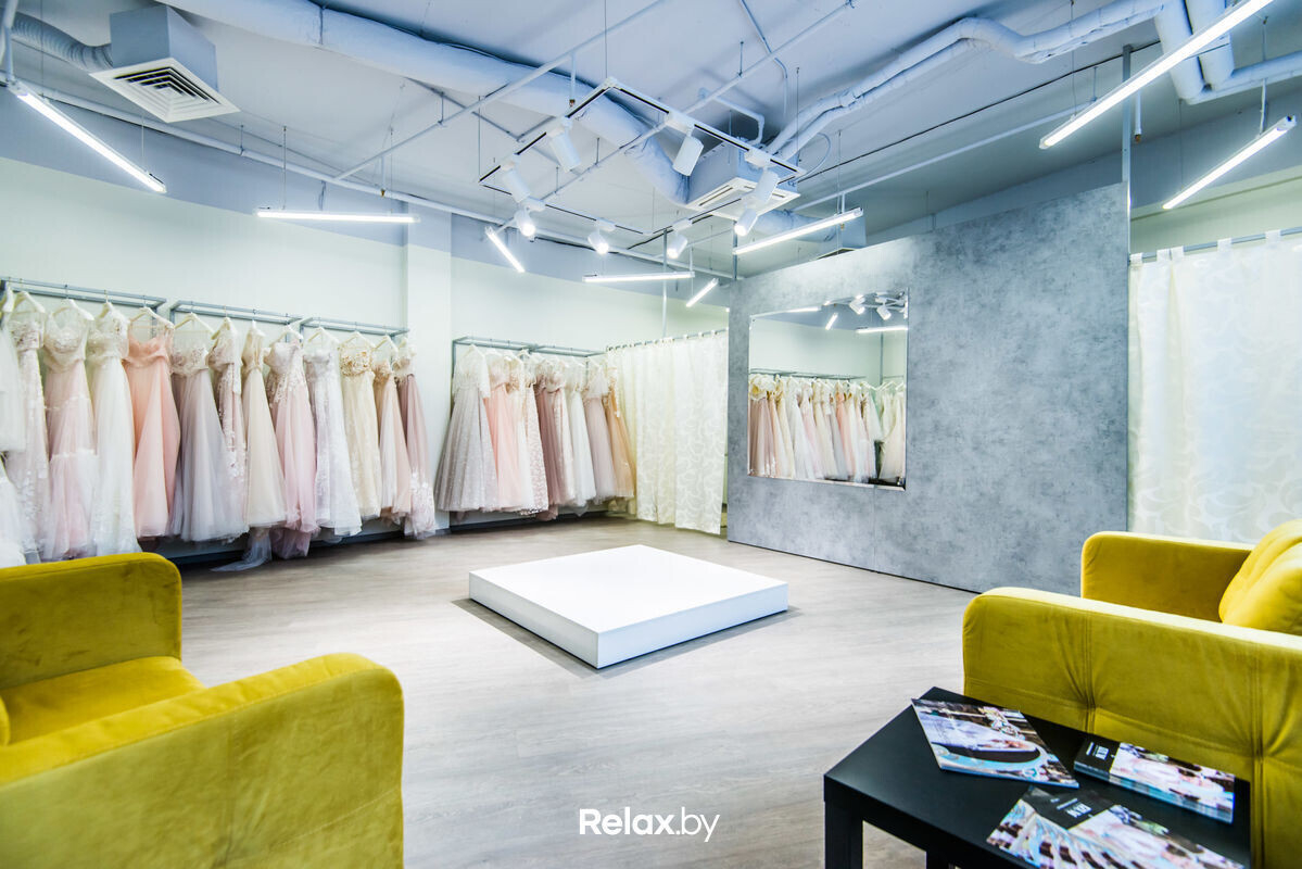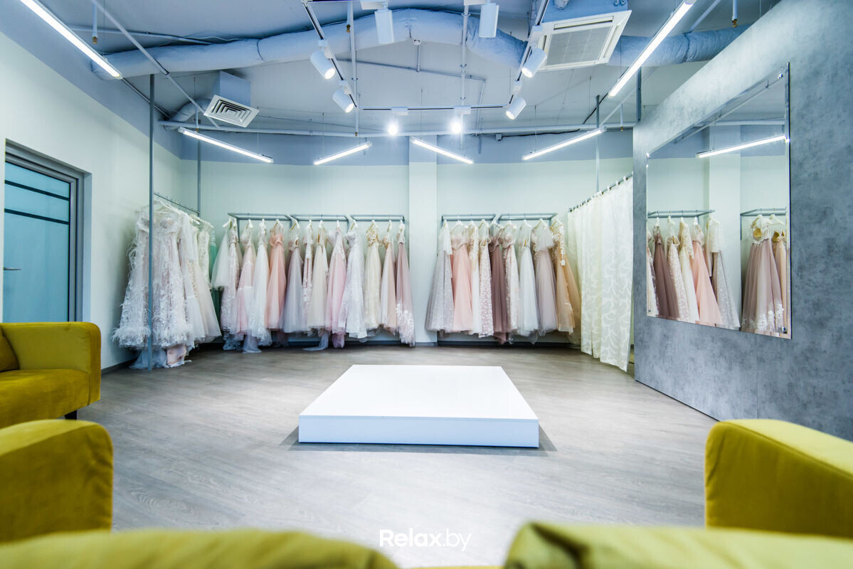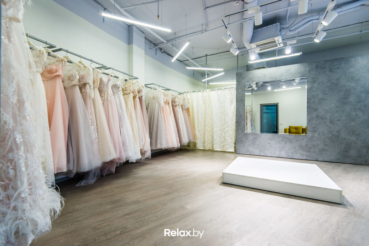 Салон предлагает до 100 не похожих между собой моделей в разнообразных цветах и стилях. Здесь есть прокат и покупка готовых платьев с бесплатной подгонкой по фигуре и росту, а также индивидуальный пошив, аренда будуарных нарядов на утро невесты и аксессуаров.