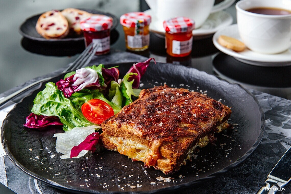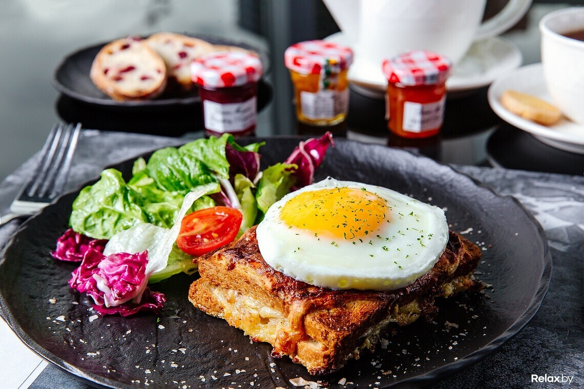 Яркий сливочный вкус и тысячи возможных сочетаний тостов разместили в меню: яйца «Флорентин» под нежным соусом «Бешамель»; классические «Крок Месьё/Мадам» с начинкой из домашней ветчины; «Ля Бриошь», пропитанная сметанным соусом со специями, яйцом и мускатным орехом; сладкие тосты «Пан Пердю» с кленовым сиропом.