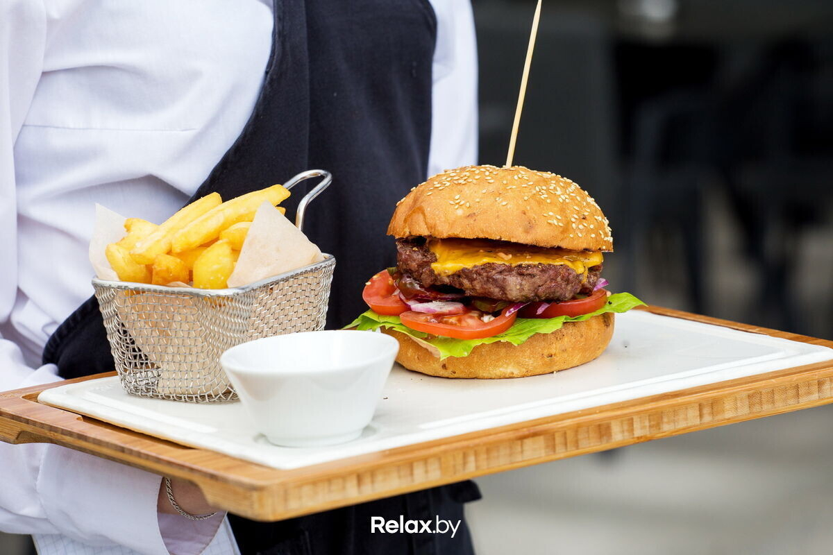 Главный хит террасы кафе по словам команды — блюда барбекю, которые готовят в гриле Green Egg. В меню бургер с говядиной, чеддером и овощами за 16 рублей, сосиски из говядины породы Black Angus с салатом из свежих овощей и лепешкой за 12 рублей и ребрышки барбекю с соусом за 14 рублей. Все блюда подаются с картофелем фри.
