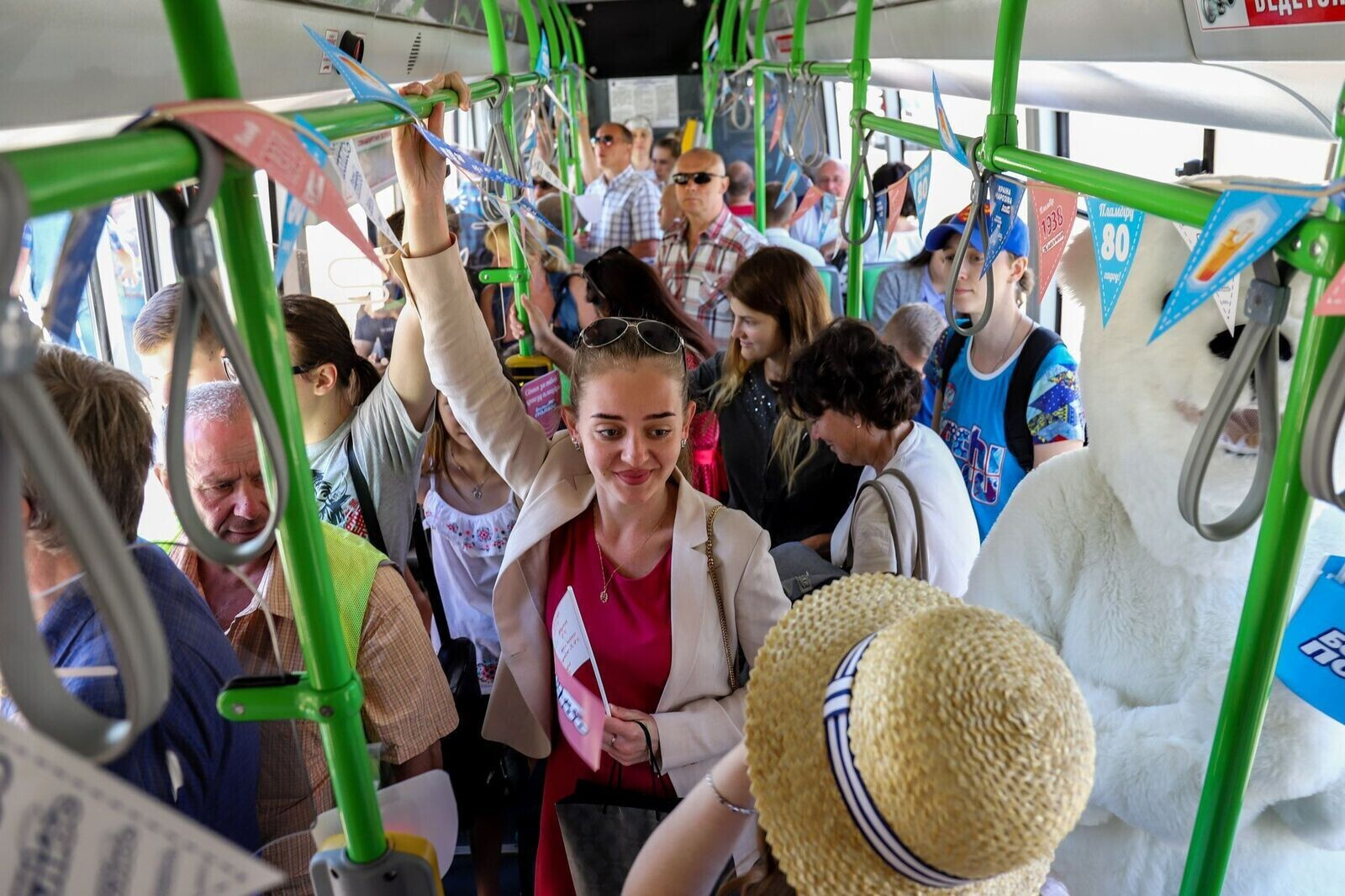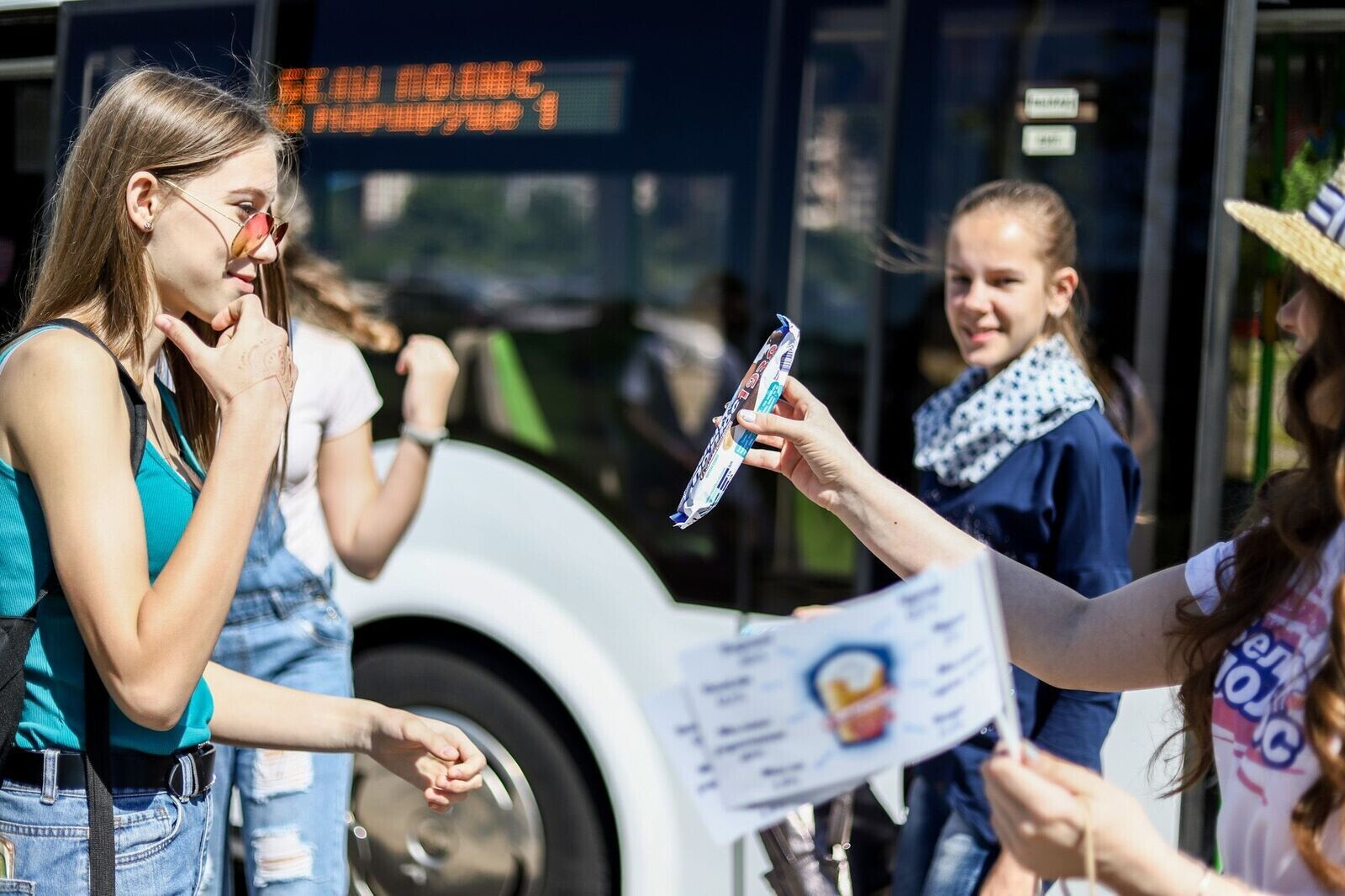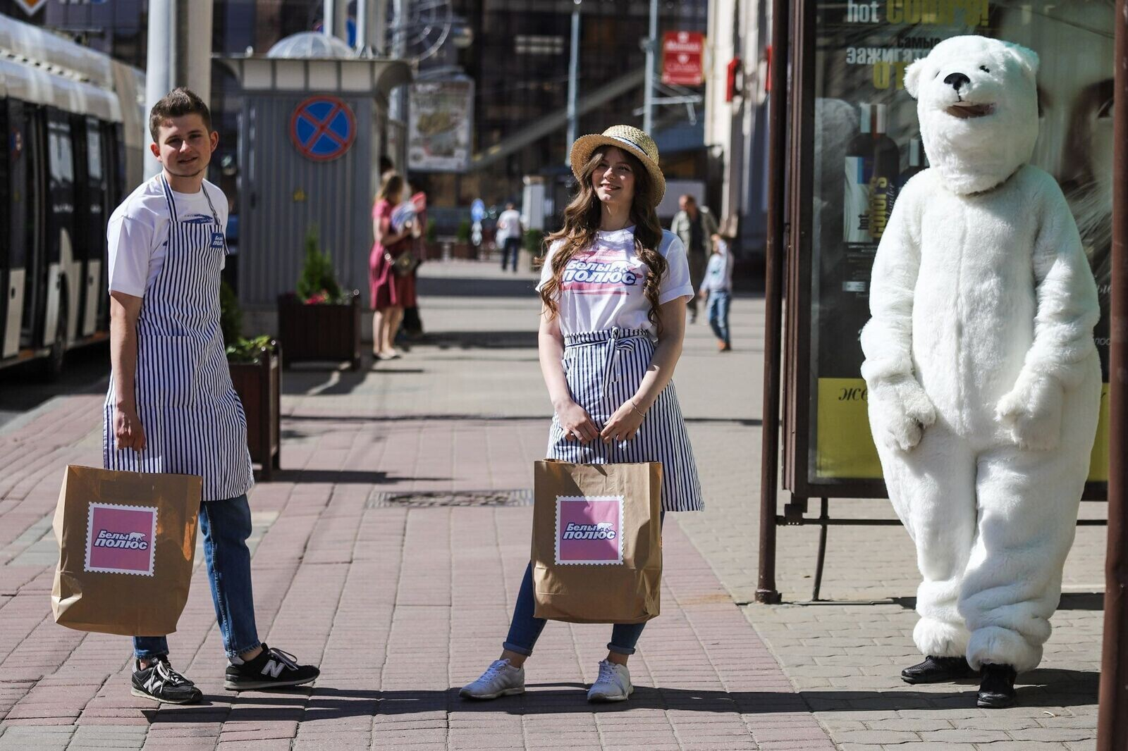 Каждый час с 10:00 до 17:00 по маршруту №1 курсировал специальный рейс «Белого Полюса», а пассажиров на входе встречал белый медведь с праздничными флажками. Получить мороженое было не так просто — нужно было назвать состав мороженого без Е-добавок. Предлагаем вам посмотреть, кто же все-таки получил заветный пломбир.