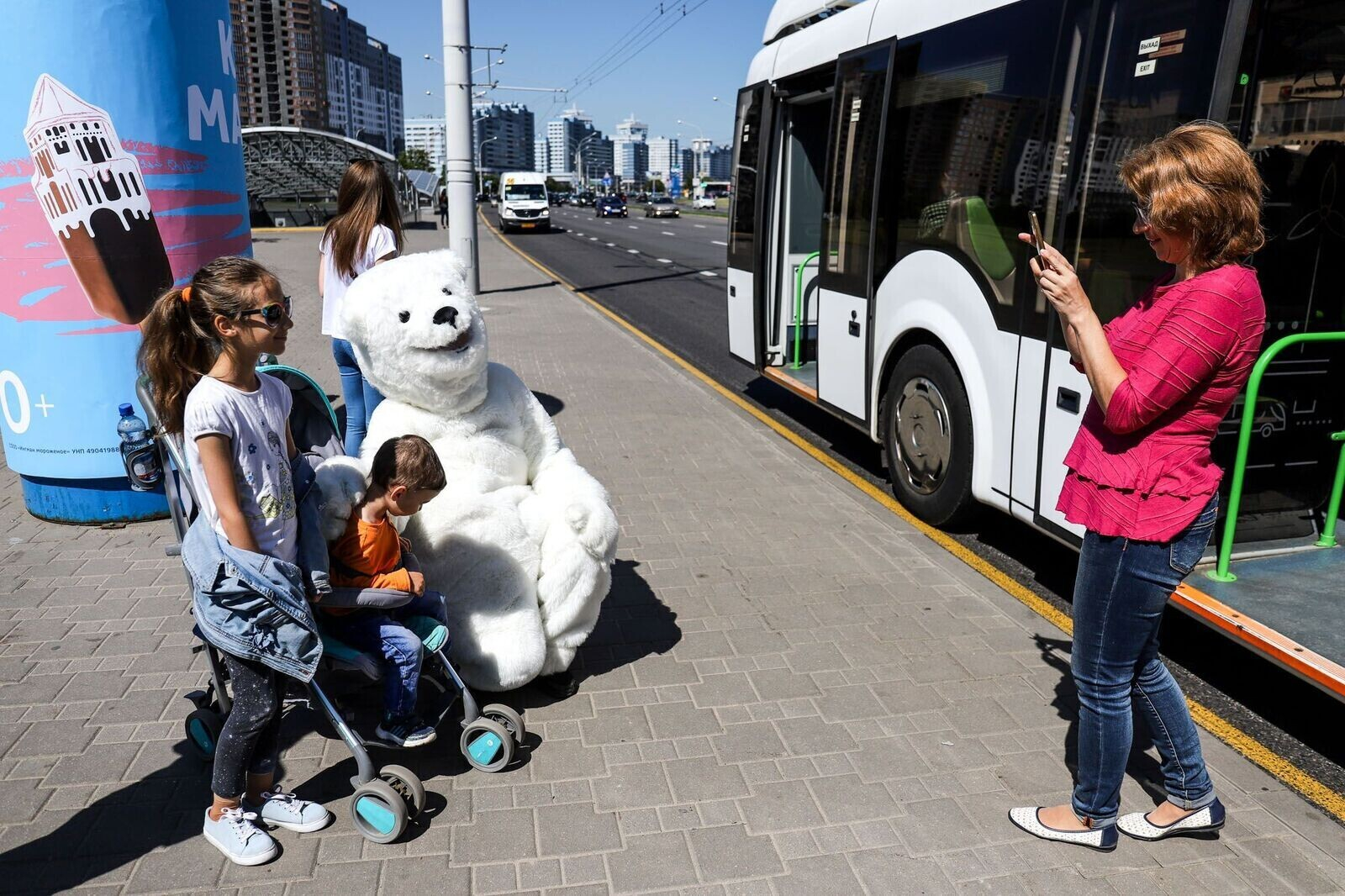 1 июня в Минске отметили День рождения первого белорусского пломбира. В честь праздника мороженщики «Белого Полюса» раздавали лакомство прямо в электробусе.