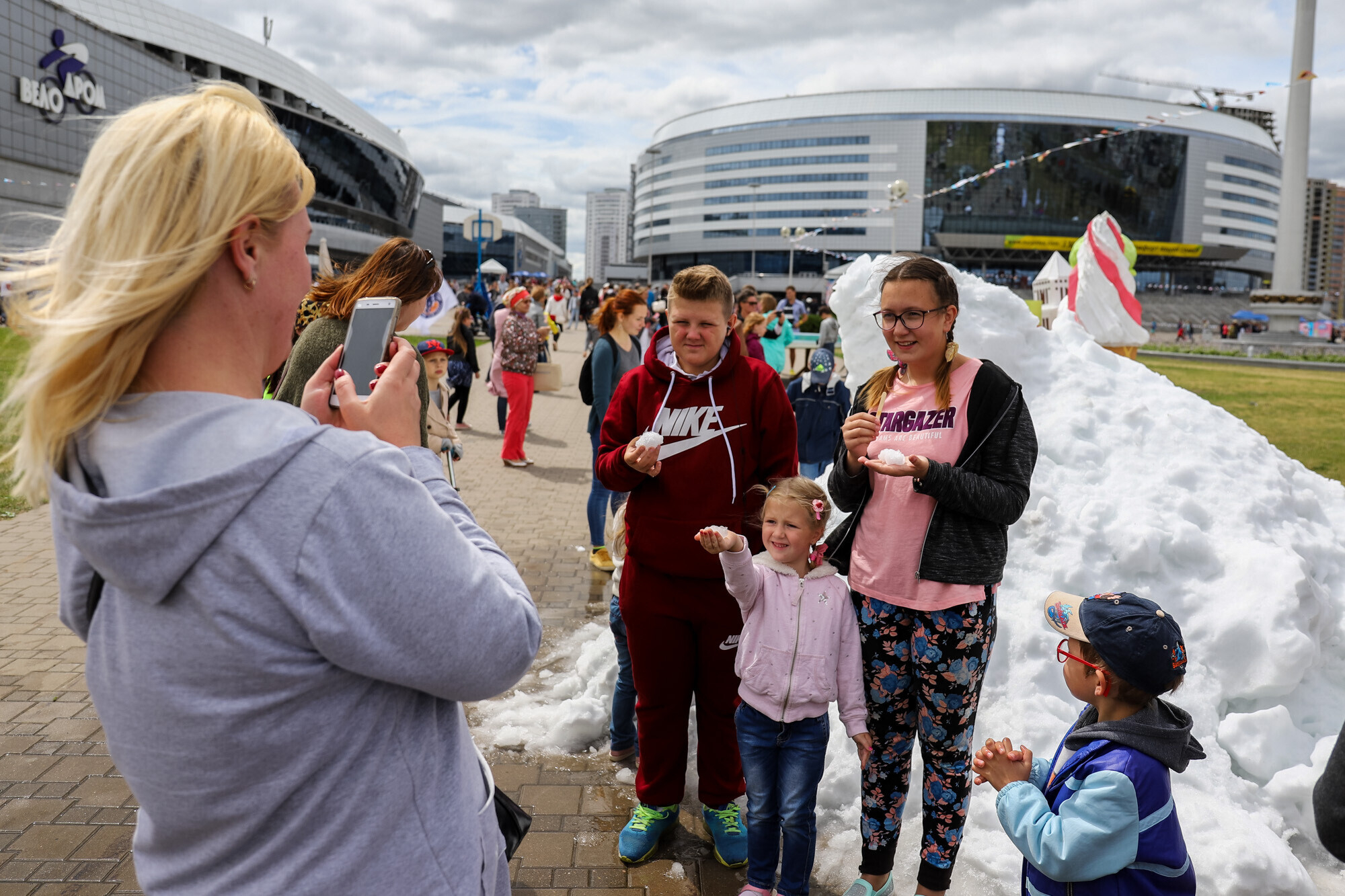 Попробовать мороженое можно было за победу в летнем керлинге и метании настоящих снежков, а двухметровая горка из снега стала главным местом для селфи. Из нее лепили снежки, а самые смелые «граждане» катались и забирались на вершину. На фесте впервые открыли главный каток страны в «Минск-Арене», доступ к которому в обычные дни есть только у профессиональных спортсменов.