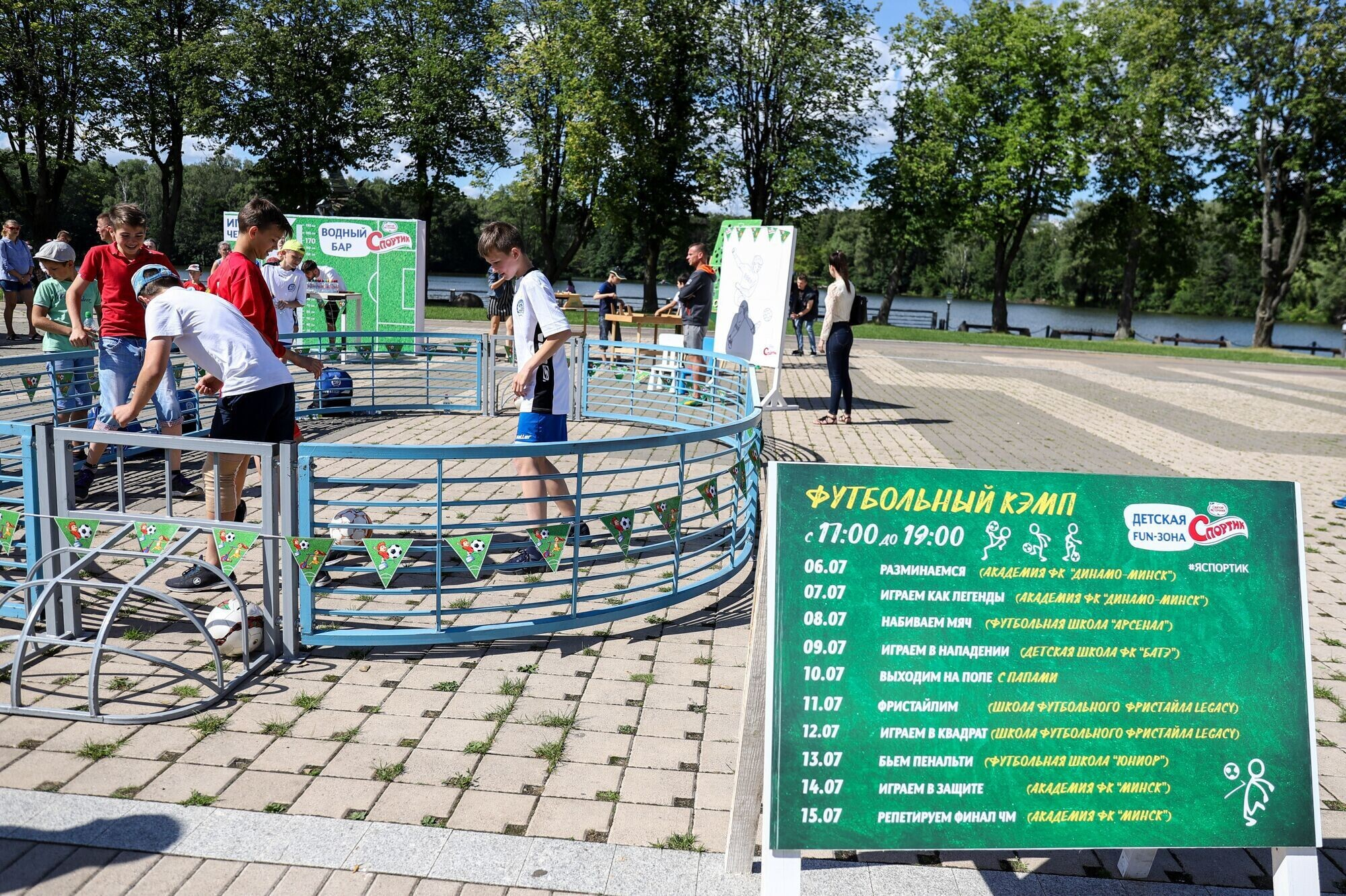 C 6 июля в столичном Парке Победы начала работу детская фан-зона «Спортик» — первый футбольный парк развлечений для всей семьи с ежедневными турнирами и мастер-классами от профессиональных спортсменов.